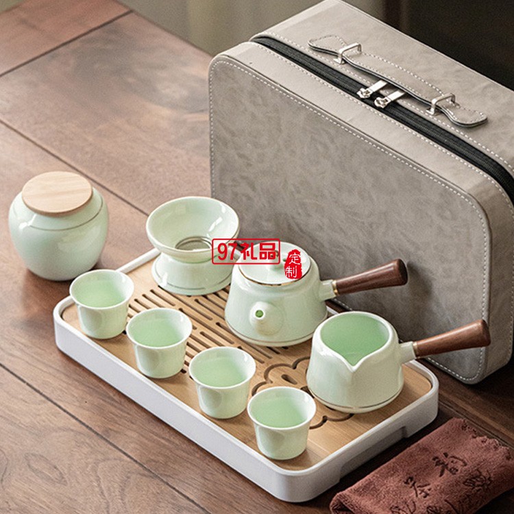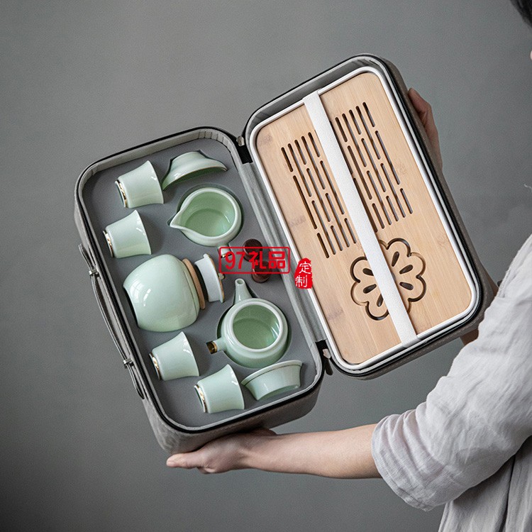 膠囊包雙側(cè)把壺旅行茶具套裝帶茶盤便攜式蓋碗陶瓷功夫茶具