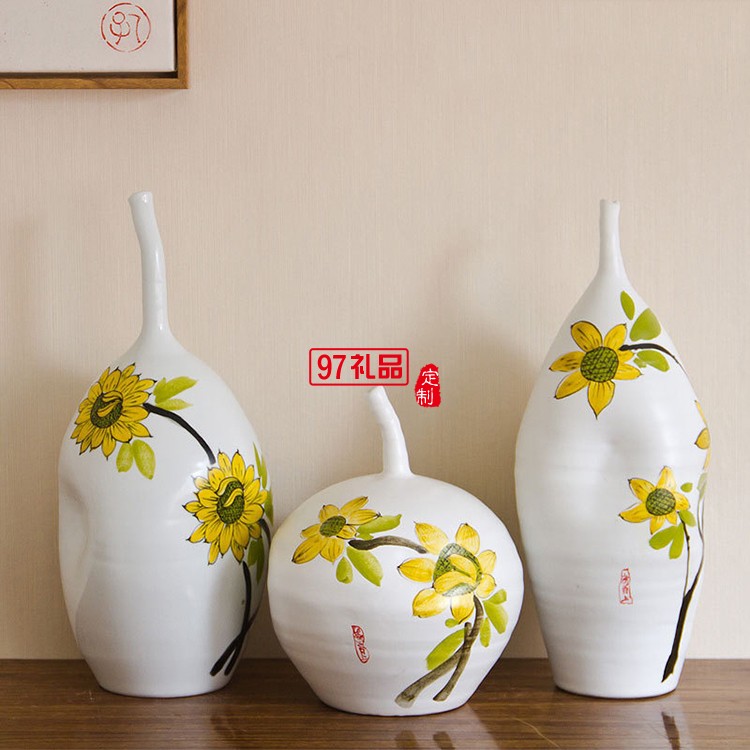 景德鎮(zhèn)陶瓷工藝品創(chuàng)意擺件禮品花瓶 中式 三件套