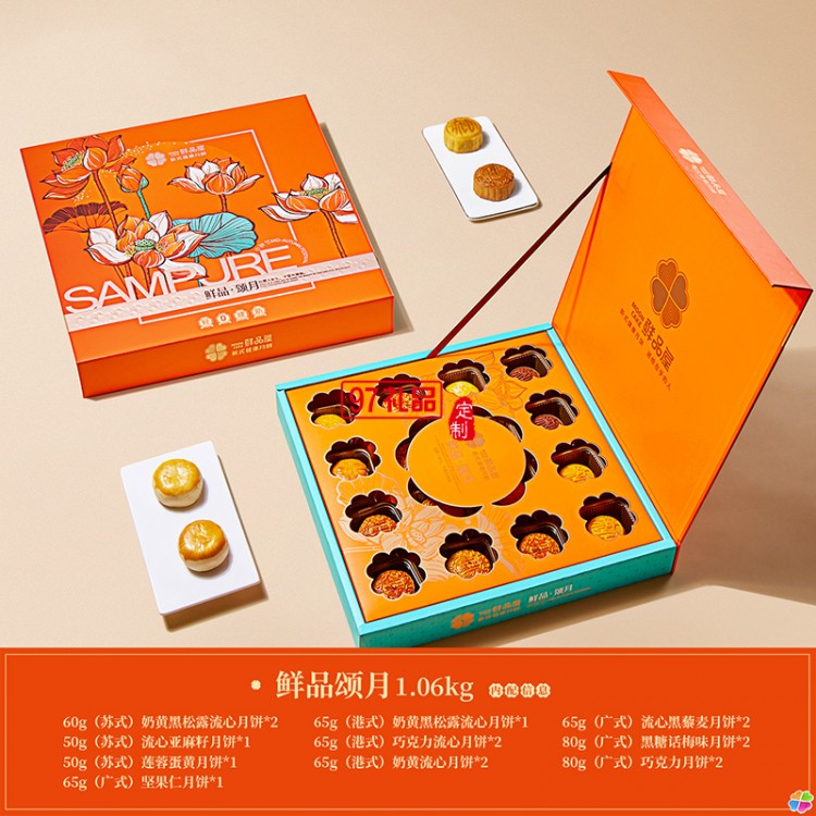鮮品屋中秋禮盒1.06kg鮮品頌月奶黃流心月餅中秋節(jié)送禮長輩