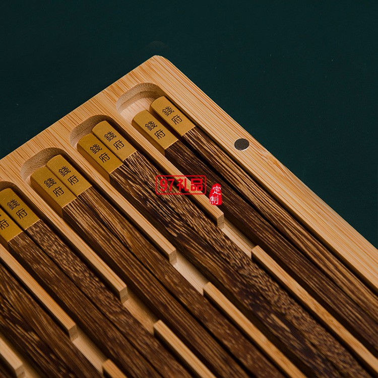 清樸堂家宴雞翅木6雙裝竹盒筷子套裝伴手禮商務禮品送客戶印LOGO