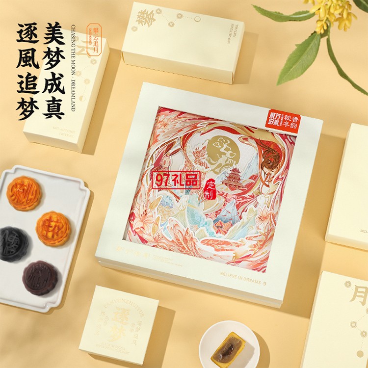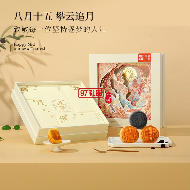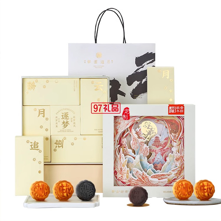 攀云追月中秋月餅禮盒裝流心奶黃港式月餅高檔送禮禮品團(tuán)購定制