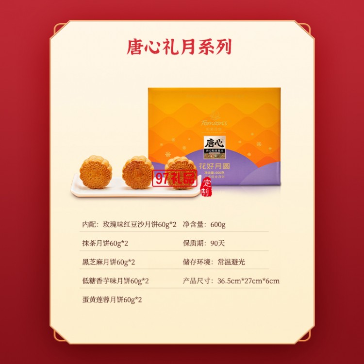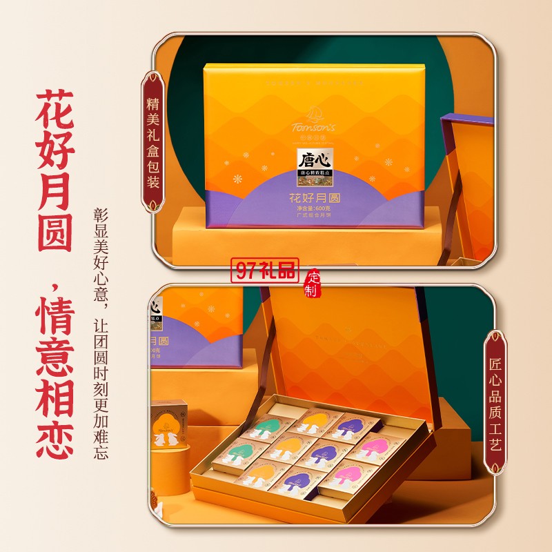 唐心花好月圓月餅禮盒600g蛋黃蓮蓉月餅中秋送禮送長輩廣式月餅