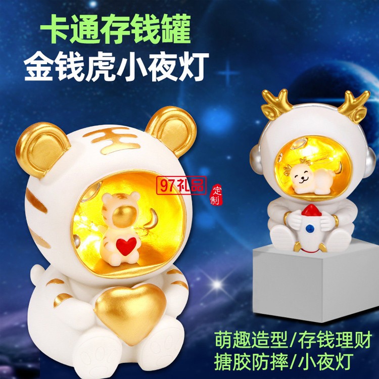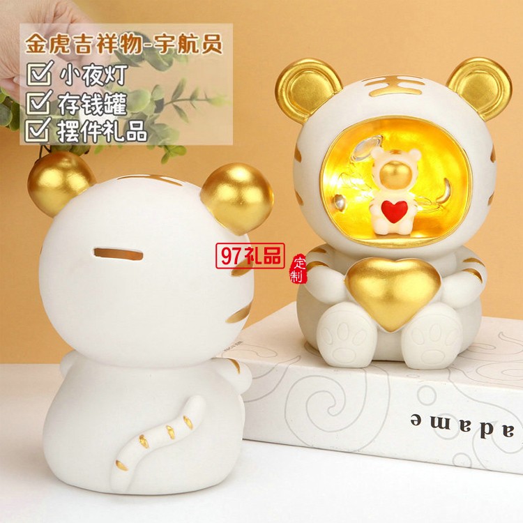 虎年吉祥物老虎小夜燈宇航員存錢(qián)罐 臥室裝飾擺件輕奢發(fā)光禮品