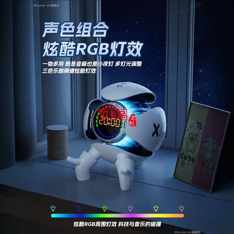 機甲小怪獸時鐘鬧鐘藍牙音響
