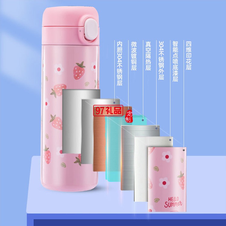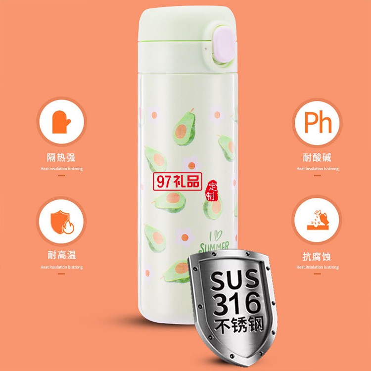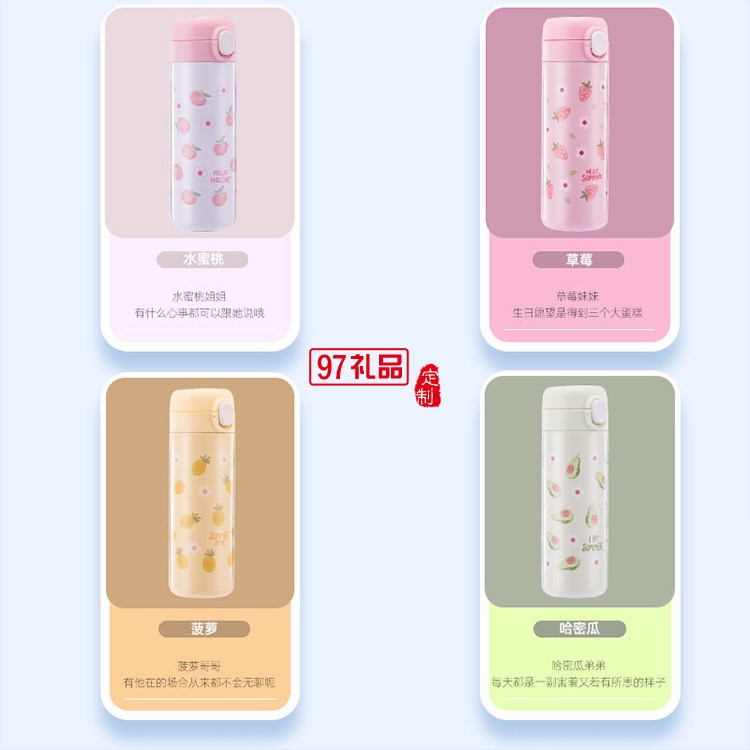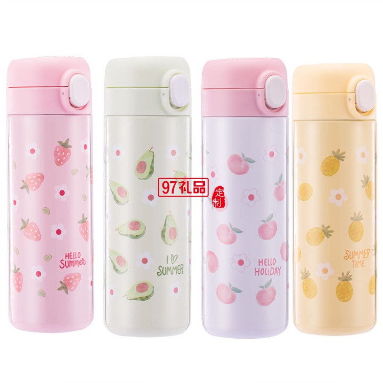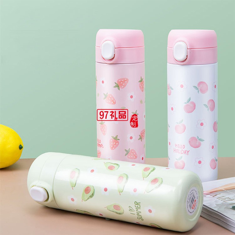 水果保溫杯批發(fā)不銹鋼創(chuàng)意彈扣學(xué)生水杯禮品杯子定制