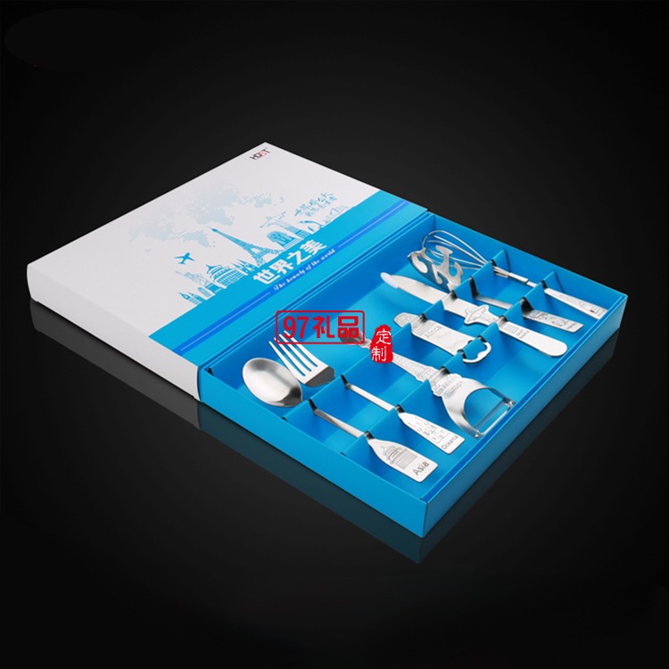 特色世界圖案 不銹鋼餐具套裝銀行保險活動 不銹鋼七件套