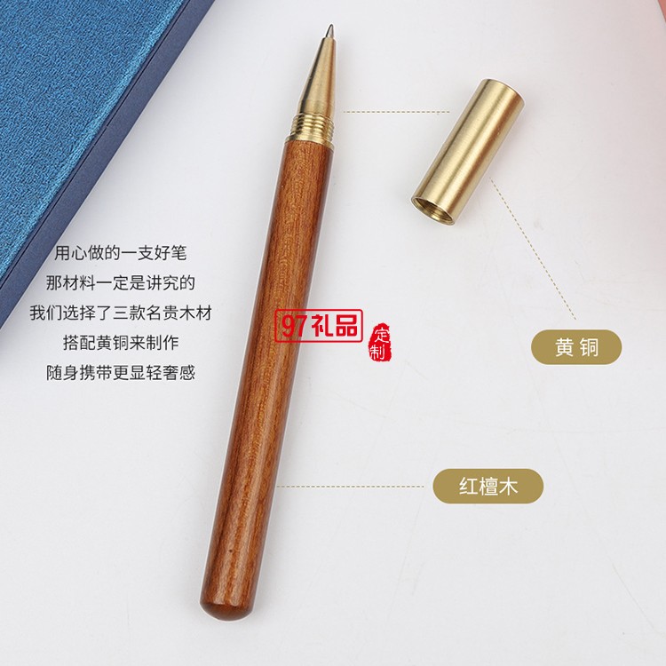 匠心之筆檀木紅木筆簽字筆寶珠筆金屬黃銅中性筆禮品商務(wù)定制logo