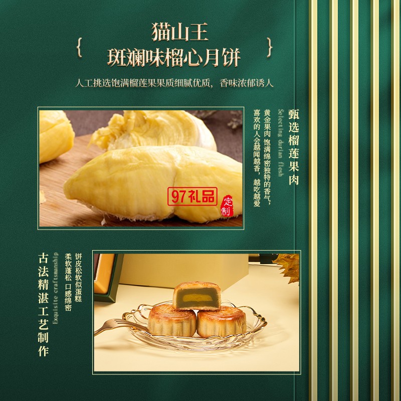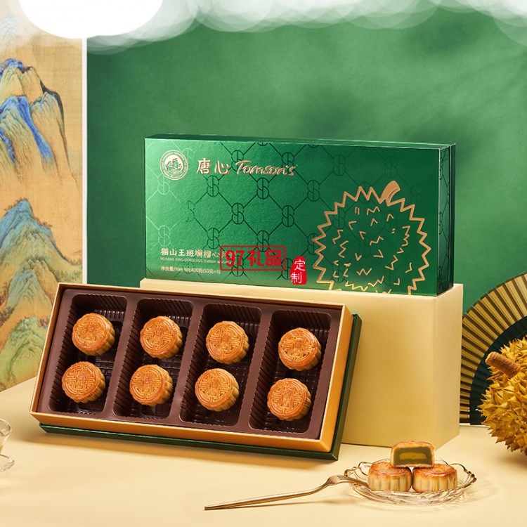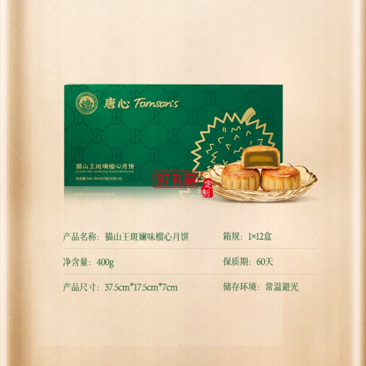 唐心貓山王斑斕流心月餅400g榴蓮果肉月餅中秋廣式港式月餅送禮