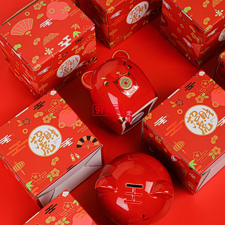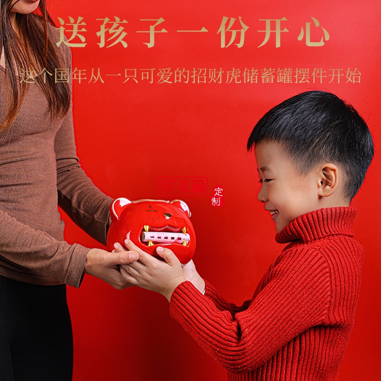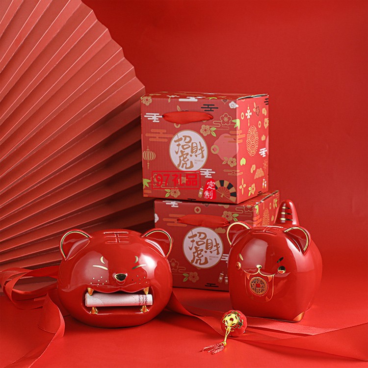 老虎儲蓄罐陶瓷生肖存錢罐虎年商務(wù)禮品地產(chǎn)保險公司年會伴手禮