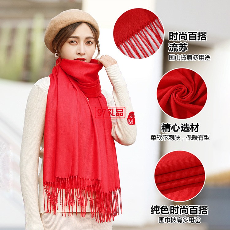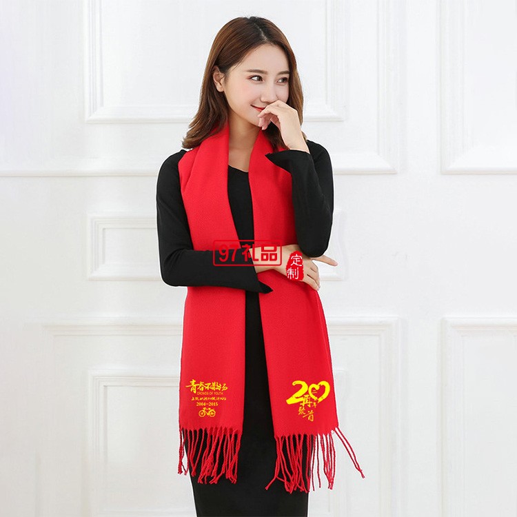 同學聚會圍巾刺繡定制logo年會禮品披肩保暖仿羊絨圍脖印字刺繡