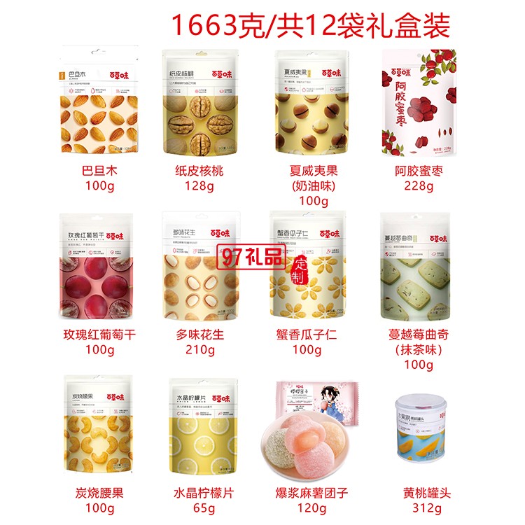 堅(jiān)果禮盒 / 經(jīng)典系列-堅(jiān)果零食分享包百草味:1663g/共12袋禮盒