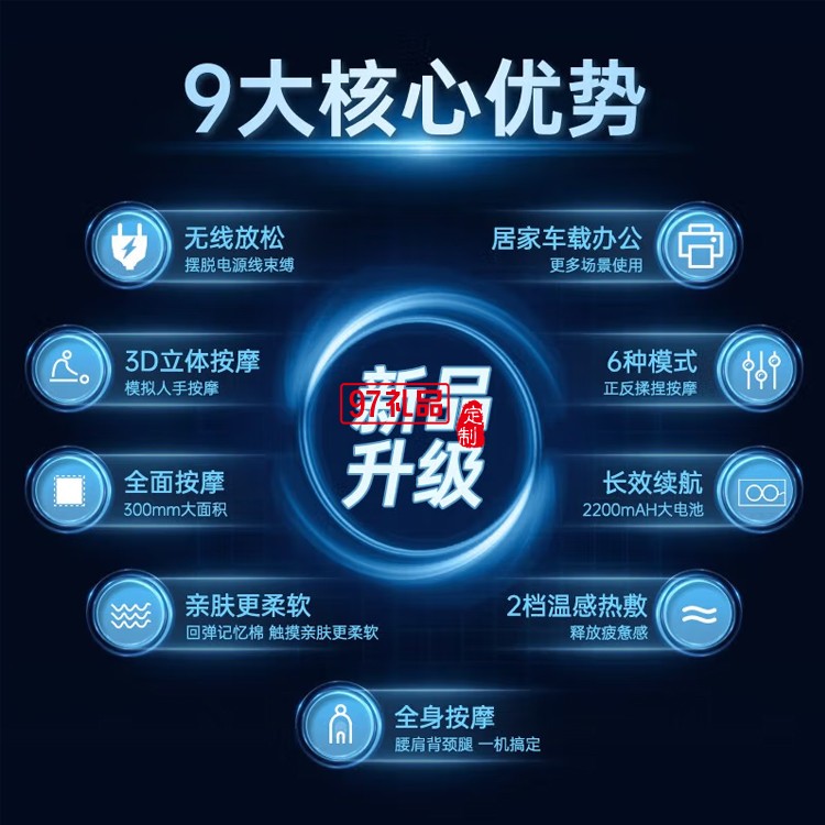 倍輕松腰背部按摩儀器無(wú)線肩頸椎按摩枕頭定制公司廣告禮品
