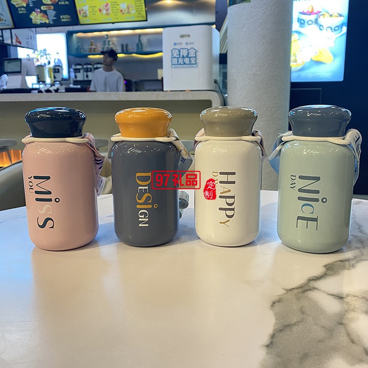 帶提繩便攜學(xué)生保溫杯新款304不銹鋼兒童水杯