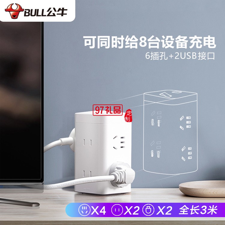 公牛插座充電大魔方插排插線板接線板多功能UU2126定制公司廣告禮品