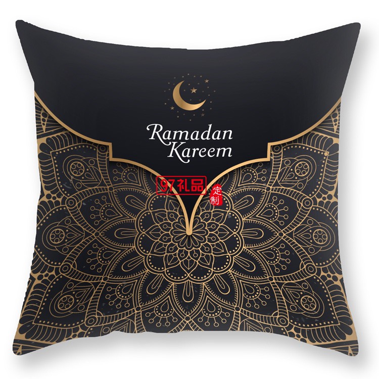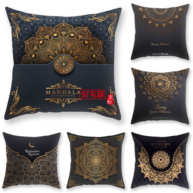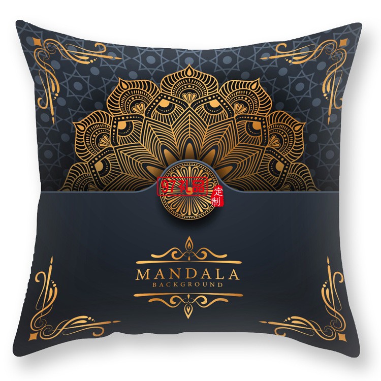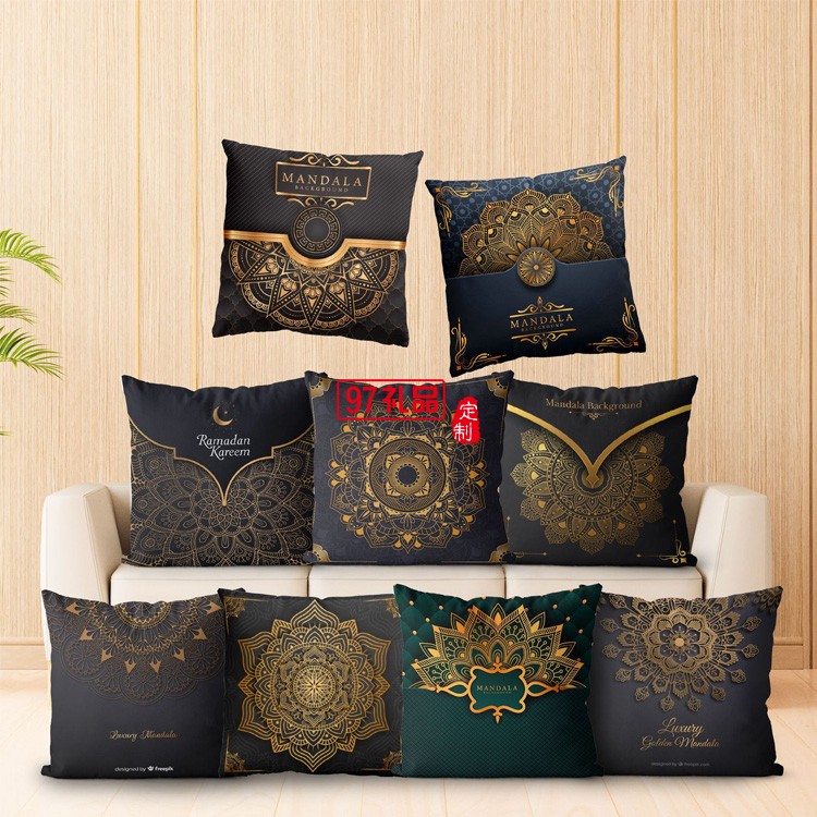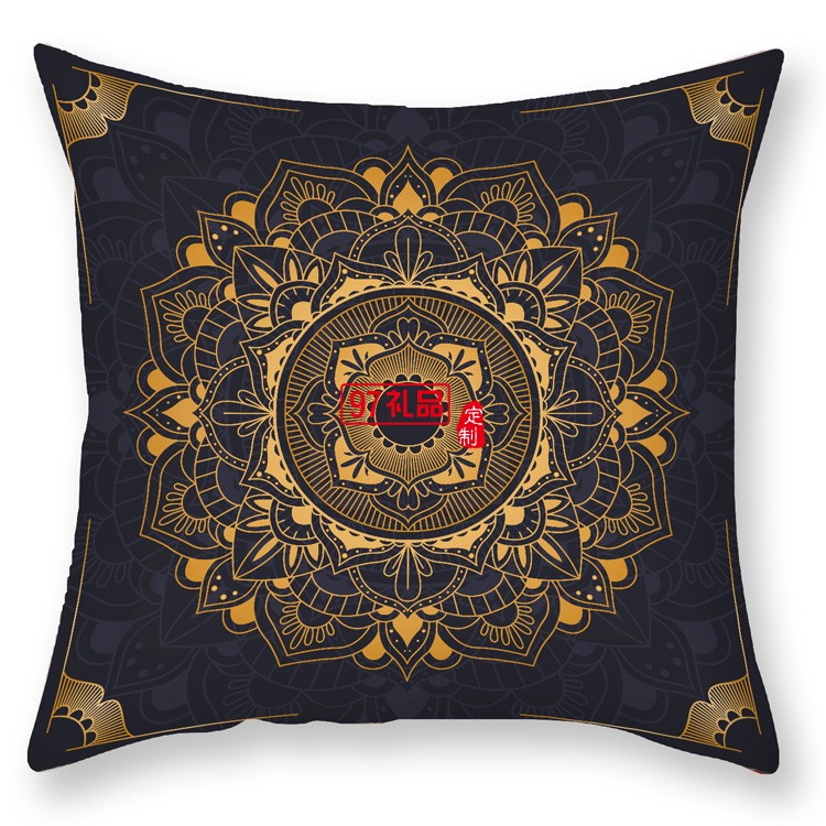 黑金曼陀羅靠枕布藝沙發(fā)靠背臥室抱枕套輕奢印花毛絨抱枕