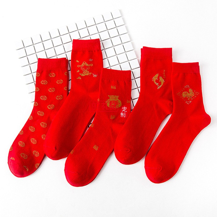 本命年中筒紅色襪子可定制