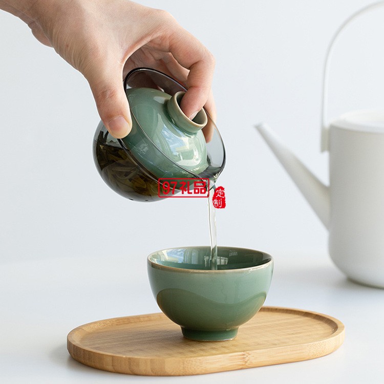 青瓷快客杯玻璃蓋碗一壺一杯旅行茶具套裝茶杯