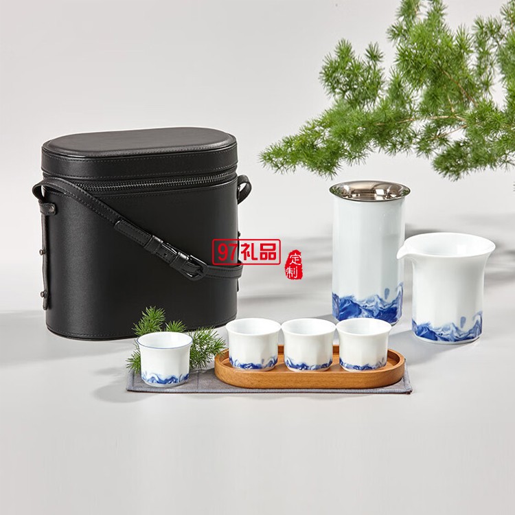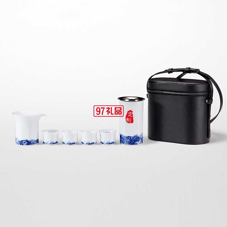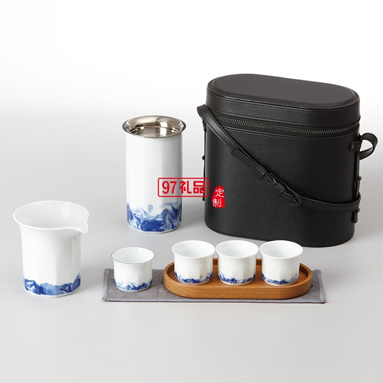 哲品「山海行」旅行茶具套裝便攜戶外一壺四杯陶瓷茶具帶茶具包