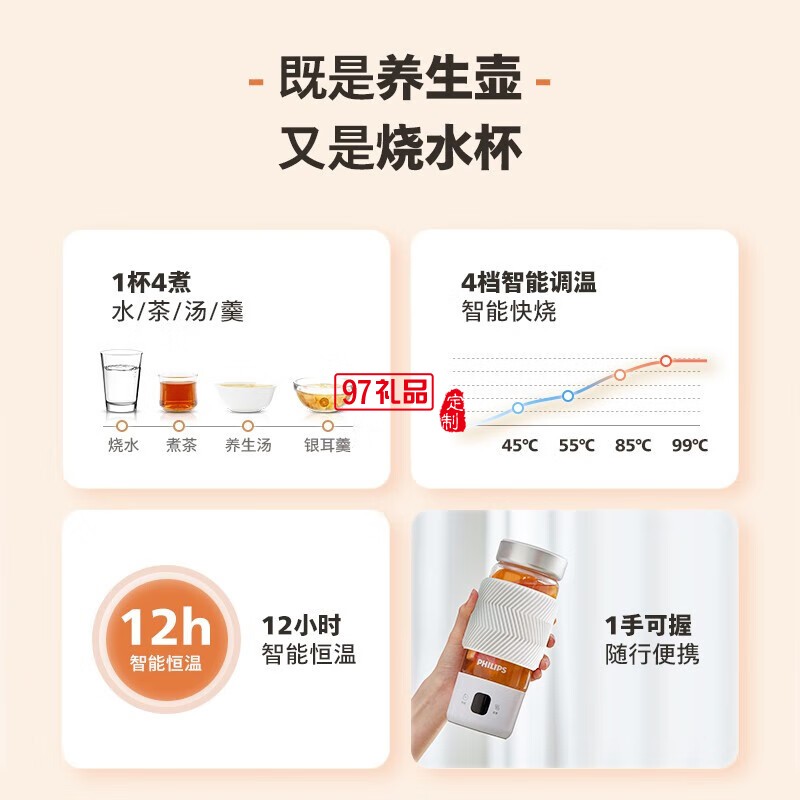 飛利浦燒水杯1杯4煮 · 調(diào)溫 · 恒溫 能燒水熬煮的隨行輕養(yǎng)杯