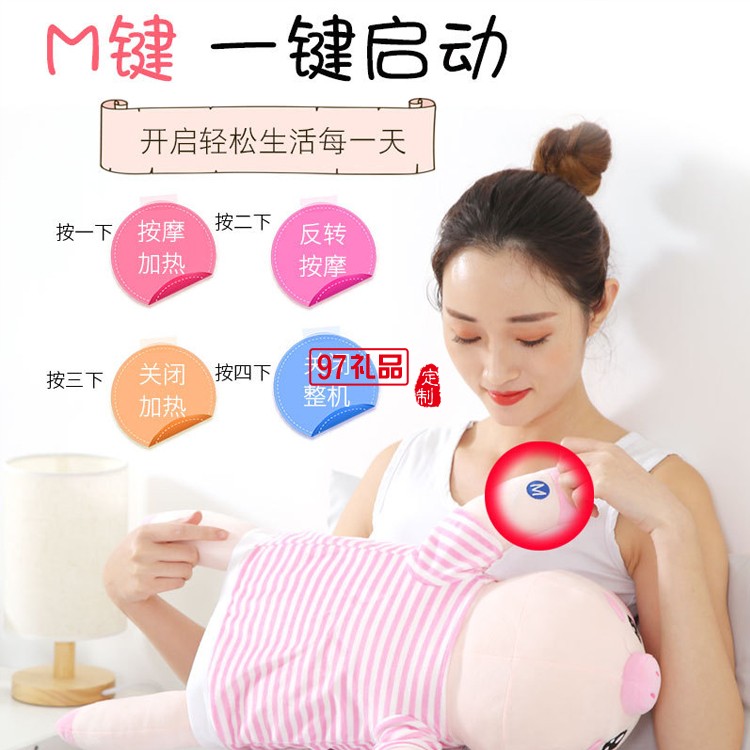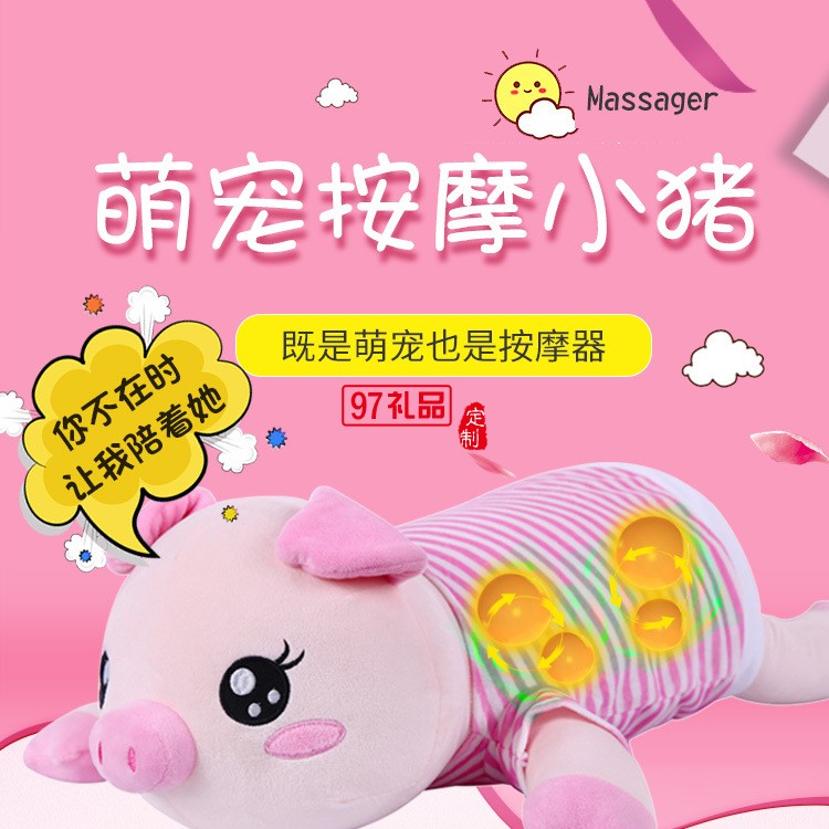 小豬頸椎按摩器頸部腰部多功能電動按摩抱枕定制公司廣告禮品
