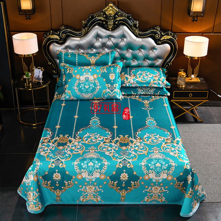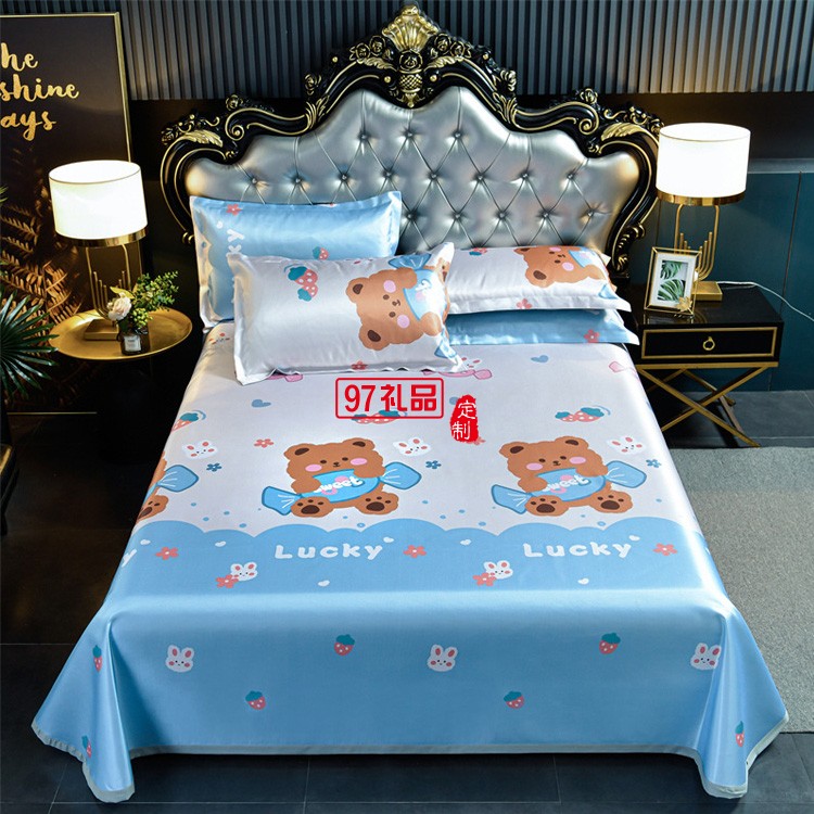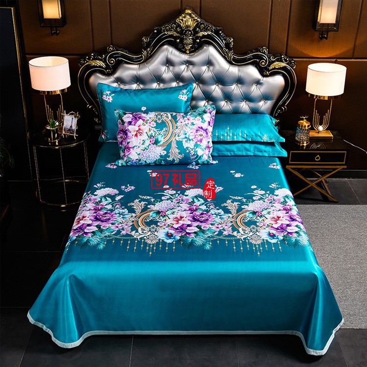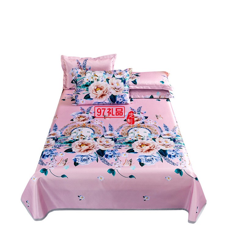 冰絲印花涼席三件套可折疊軟席子夏季單雙人宿舍家用冰絲席可機(jī)洗