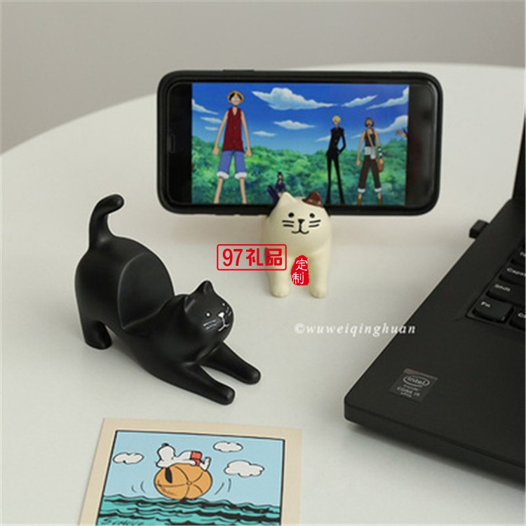 日式卡卡通貓咪手機(jī)支架桌面擺件
