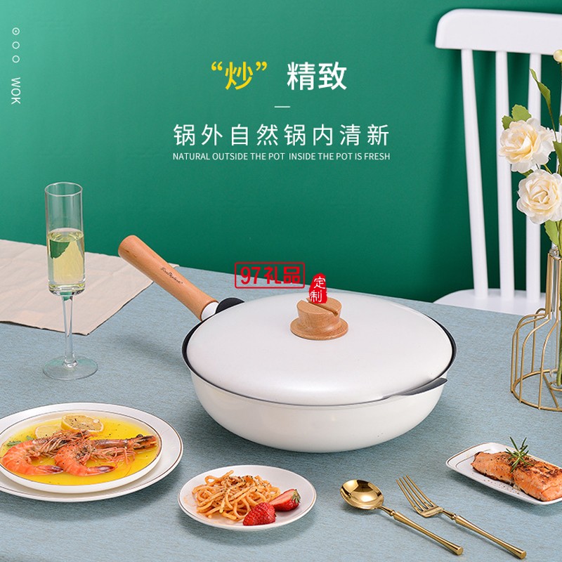 定制不粘鍋三件套鍋具家用加厚炒鍋大容量湯鍋送客戶禮品員工福利