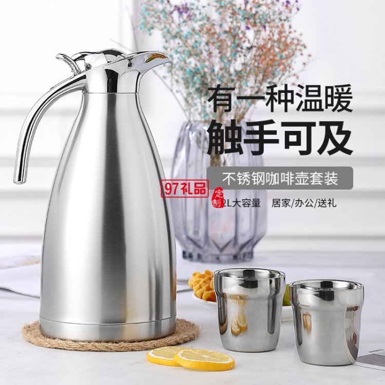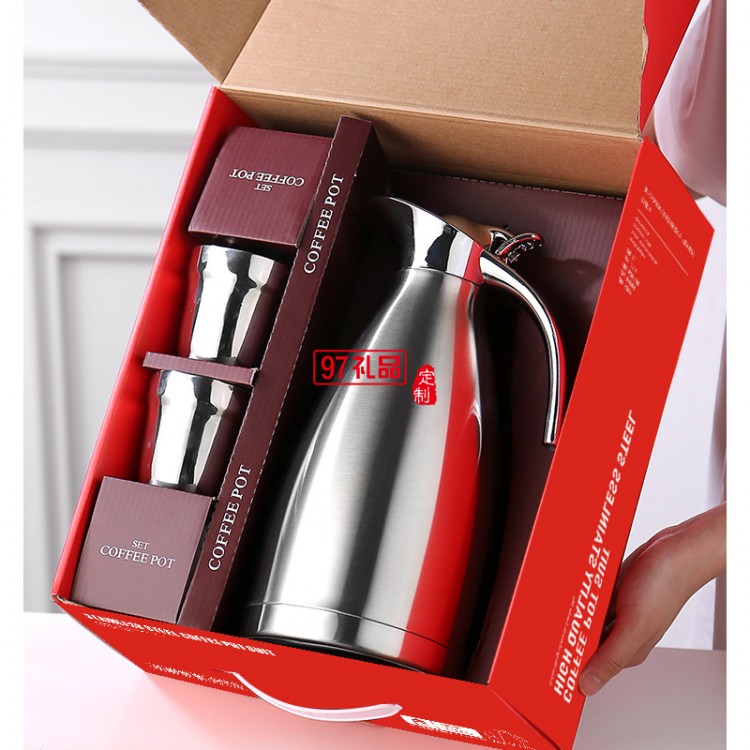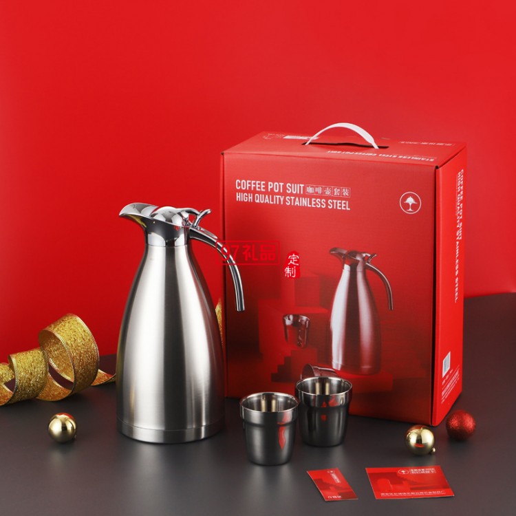 不銹鋼壺保溫壺三件套 歐式真空咖啡壺水壺婚慶喜慶實(shí)用禮盒套裝