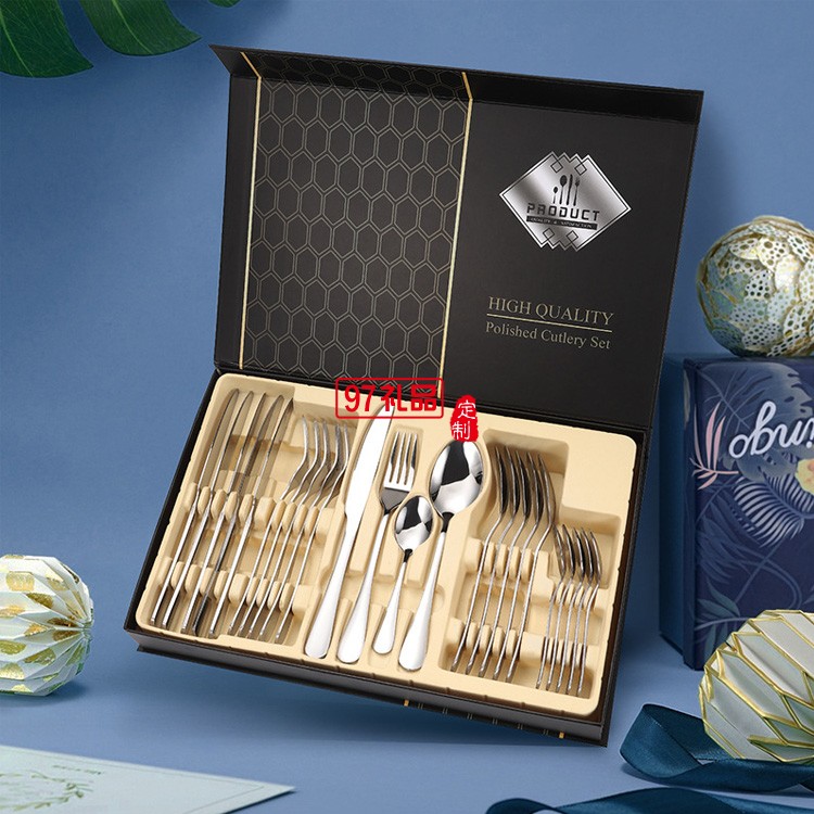 不銹鋼餐具24件套裝1010四主件刀叉勺跨境禮盒