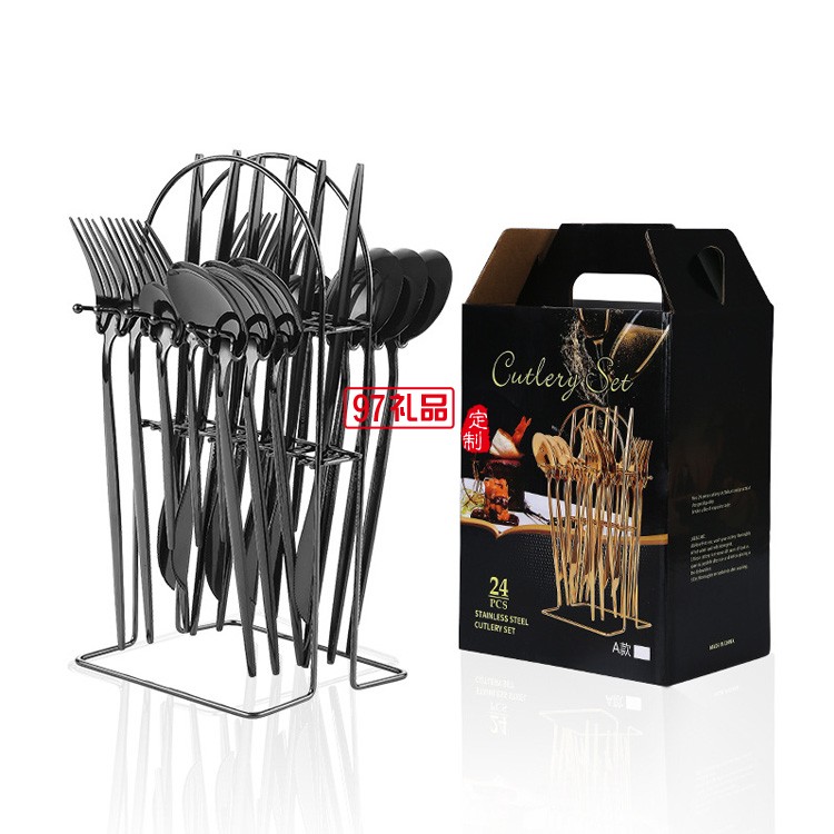 不銹鋼餐具24件套葡萄牙西餐牛排刀叉勺餐具架禮盒套裝