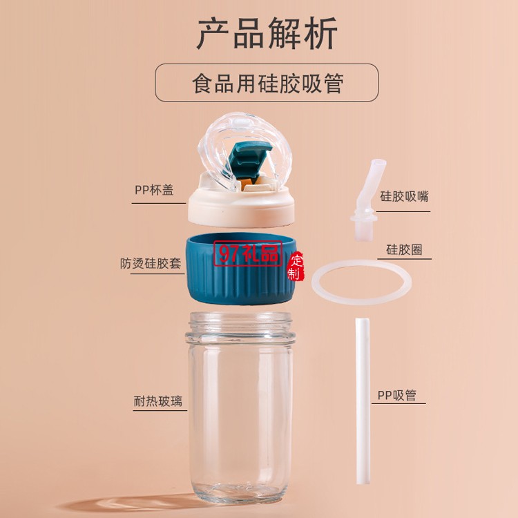 玻璃雙飲杯ins風(fēng)一杯雙口泡茶杯子家用咖啡杯便攜式水杯