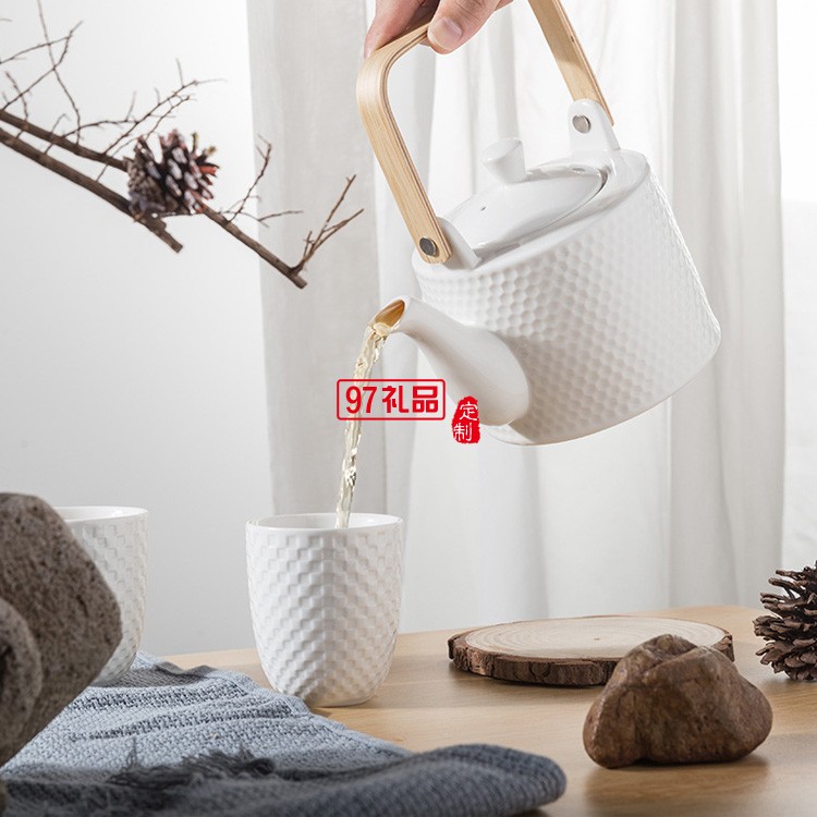 日式陶瓷茶壺家用創(chuàng)意水壺泡茶壺北歐簡(jiǎn)約茶杯浮雕茶具