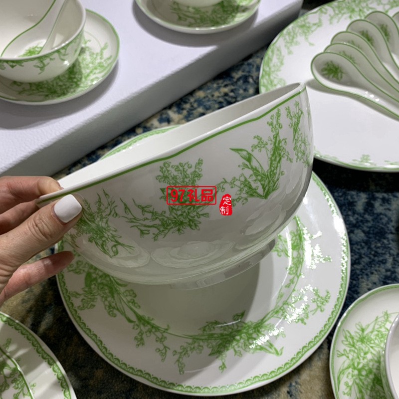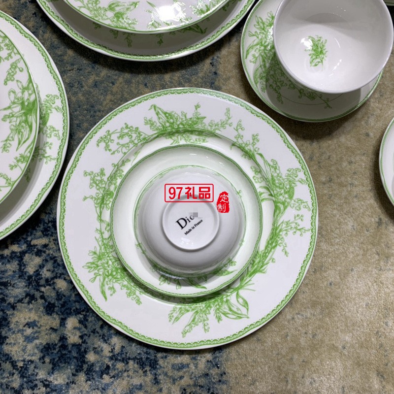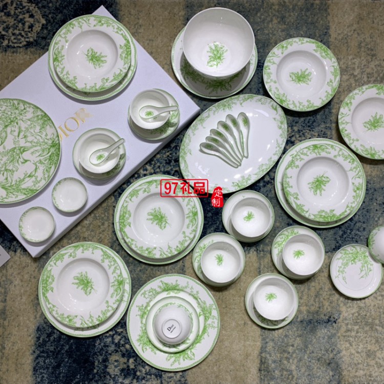 Do鈴蘭系列41頭餐具套裝禮盒DIO MAISON高級(jí)骨瓷綠色喬遷結(jié)婚