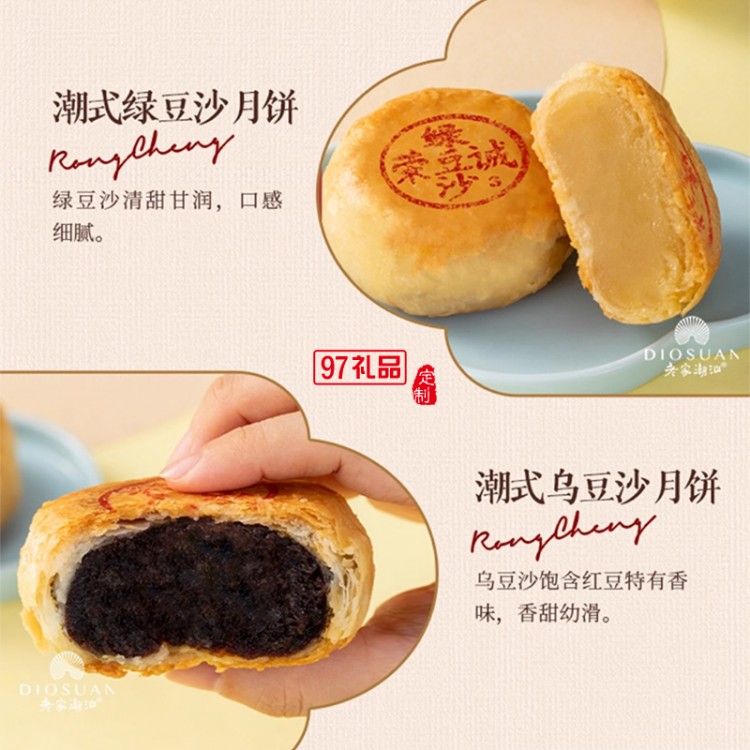 榮誠(chéng)潮韻奔流月餅禮盒雙烹潮汕蛋黃烏豆沙中秋送禮