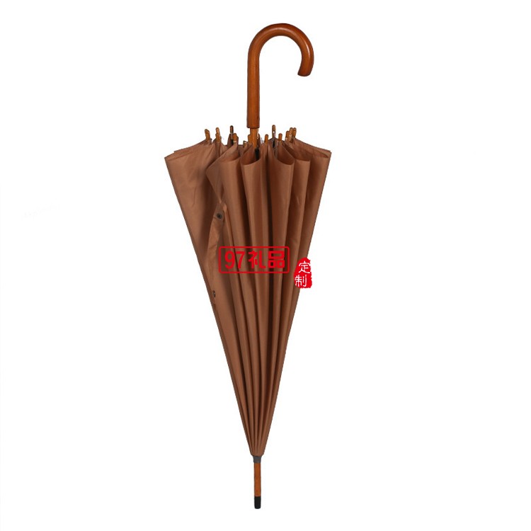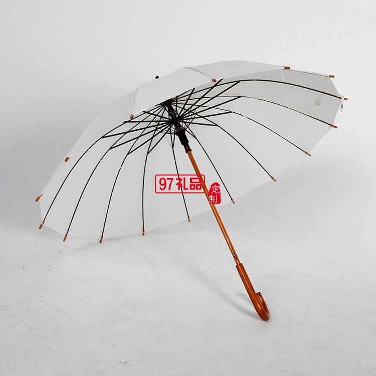 復(fù)古雨傘16骨長柄木桿純色日系簡約直桿傘廣告?zhèn)?