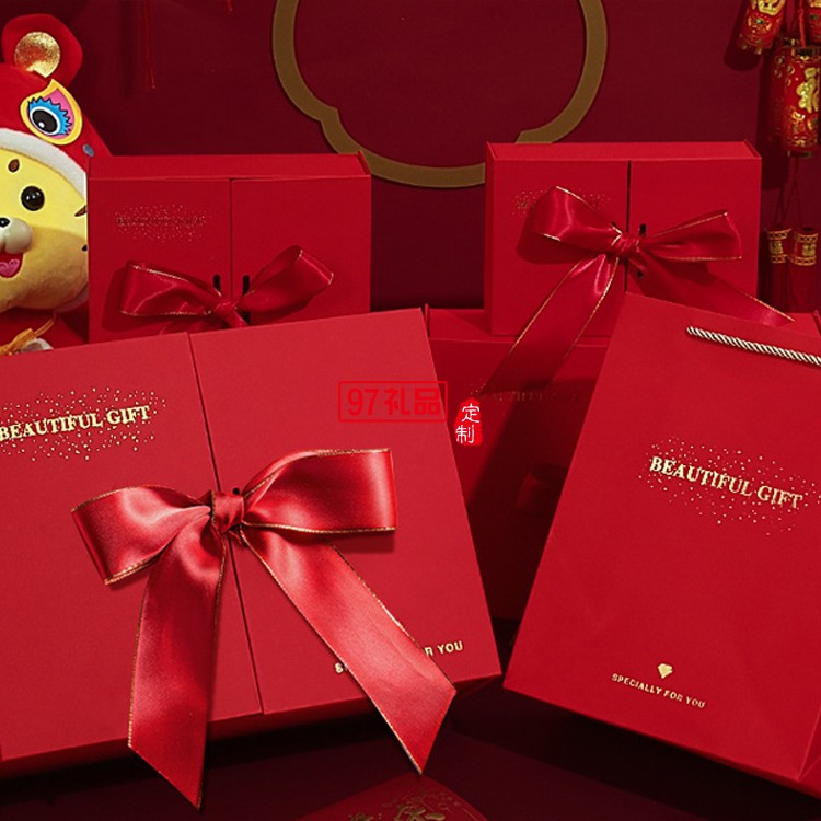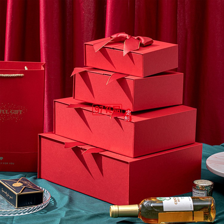 紅色蝴蝶結(jié)禮品伴手禮盒天地蓋空盒可以定制logo