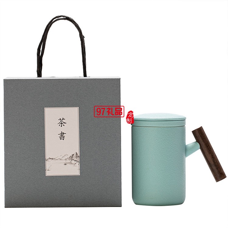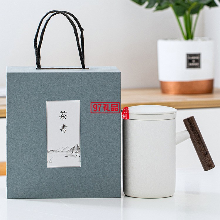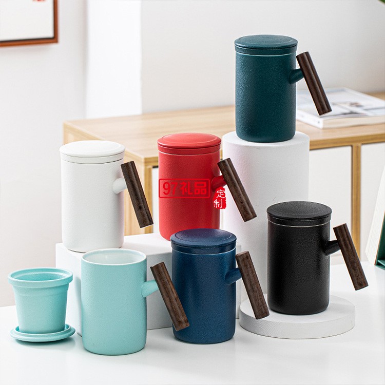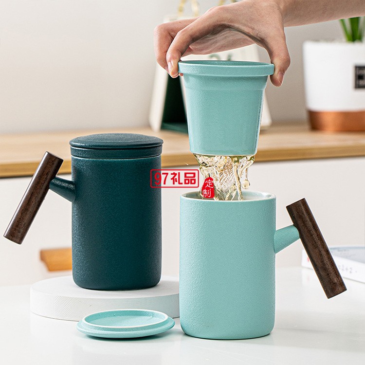 新品陶瓷馬克杯泡茶杯單杯過濾大容量木柄辦公杯 可定制logo