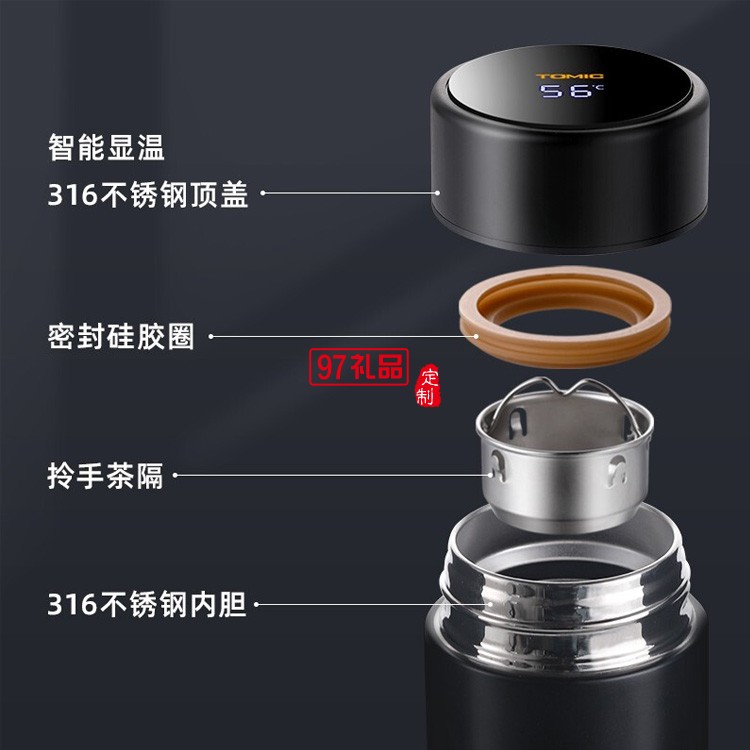 智能保溫杯大容量316不銹鋼帶茶濾水杯顯溫辦公泡茶杯禮品杯子定制