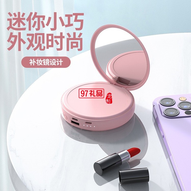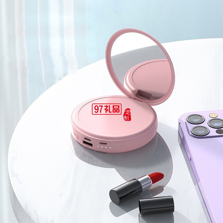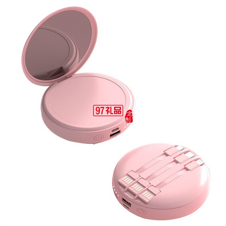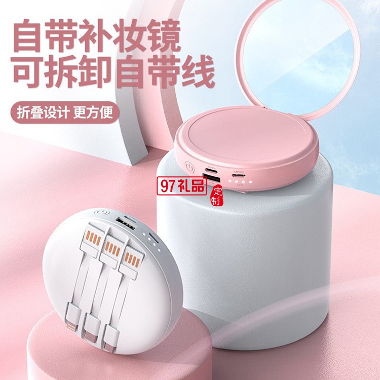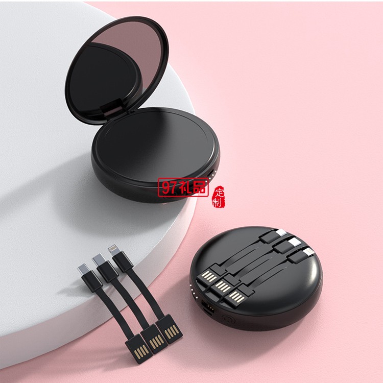 創(chuàng)意圓形自帶線(xiàn)充電寶迷你美妝鏡20000毫安