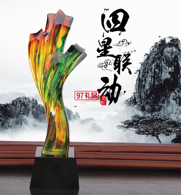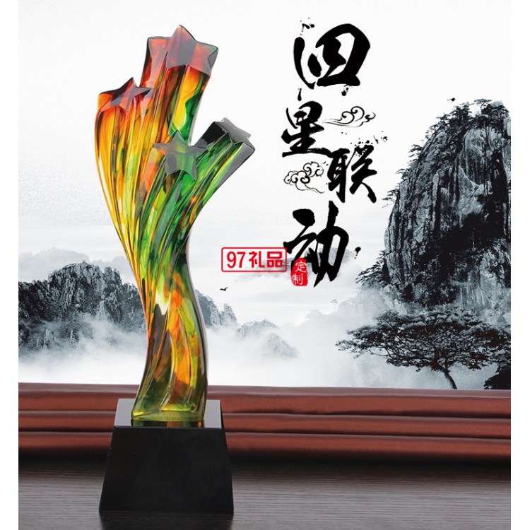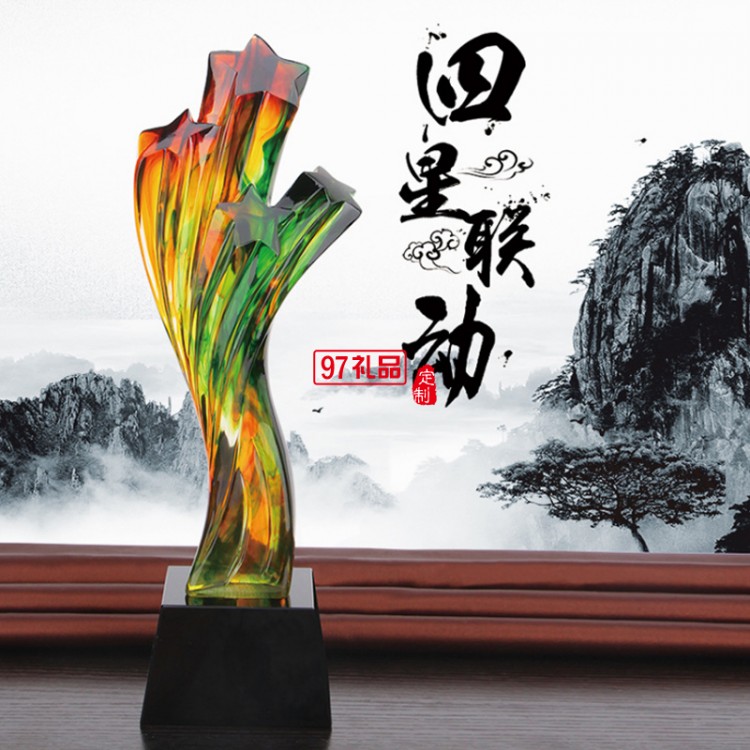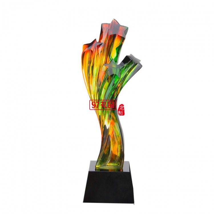 創(chuàng)意五角星星獎杯 高檔水琉璃樹脂獎杯定制