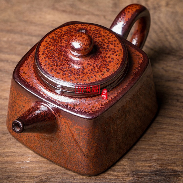 火龍四方壺 原礦天目釉鐵胎茶壺名家純手工球孔泡茶器茶具