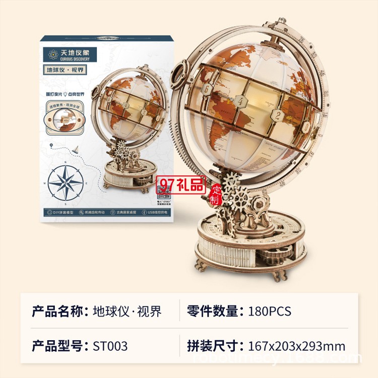 木制解壓玩具地球 儀DIY立體手工