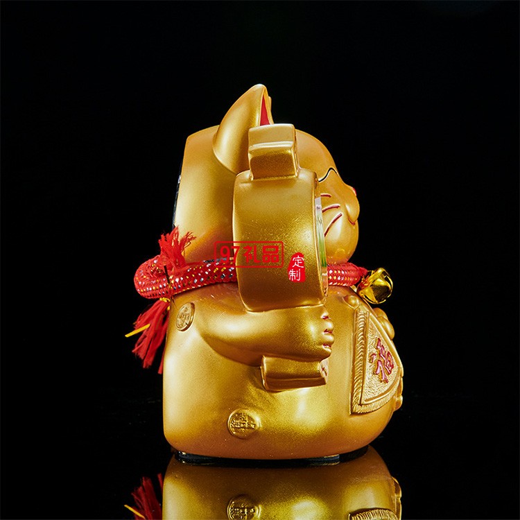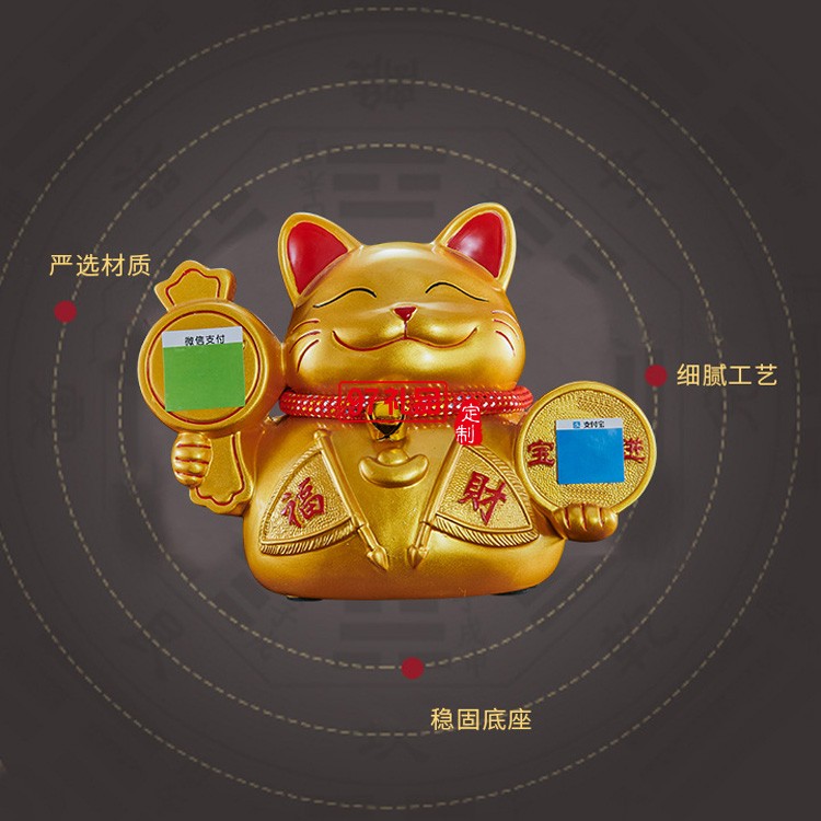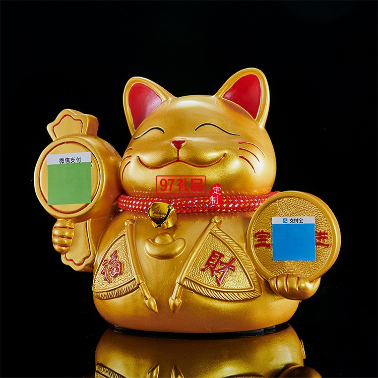 創(chuàng)意二維碼樹脂金色小貓工藝品