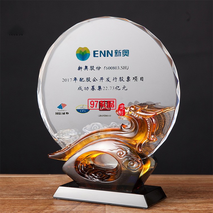 創(chuàng)意祥龍如意造型水晶琉璃獎牌