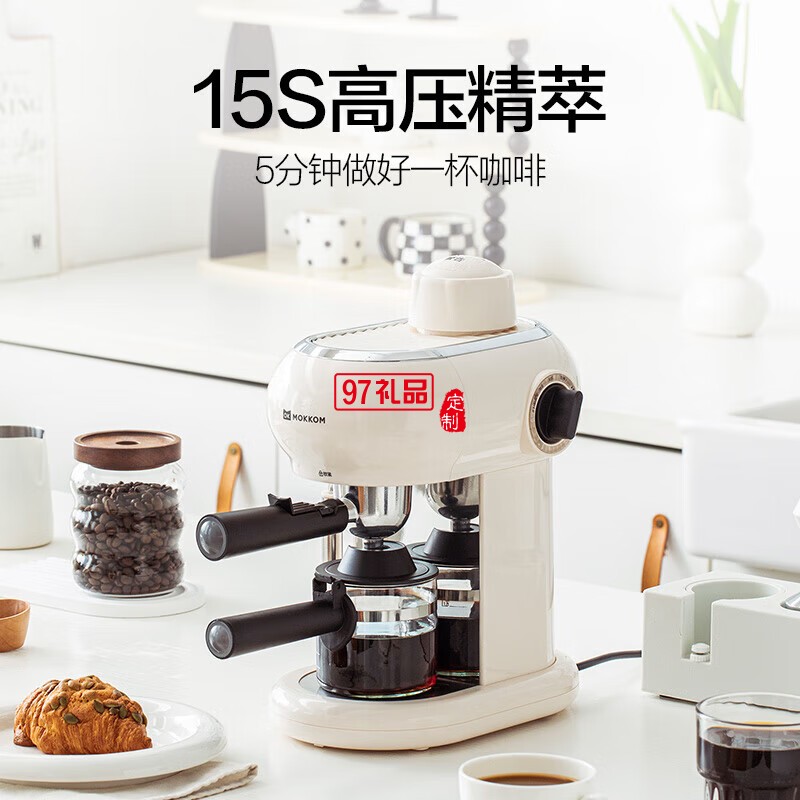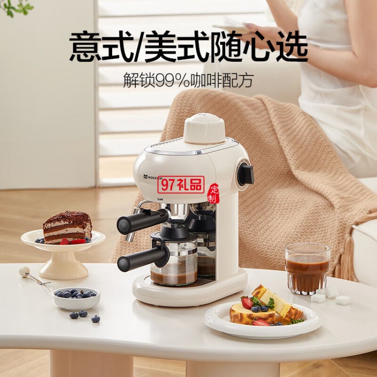 家用多功能小型意式半自動(dòng)咖啡機(jī) 米白色 MK-382 企業(yè)專屬定制