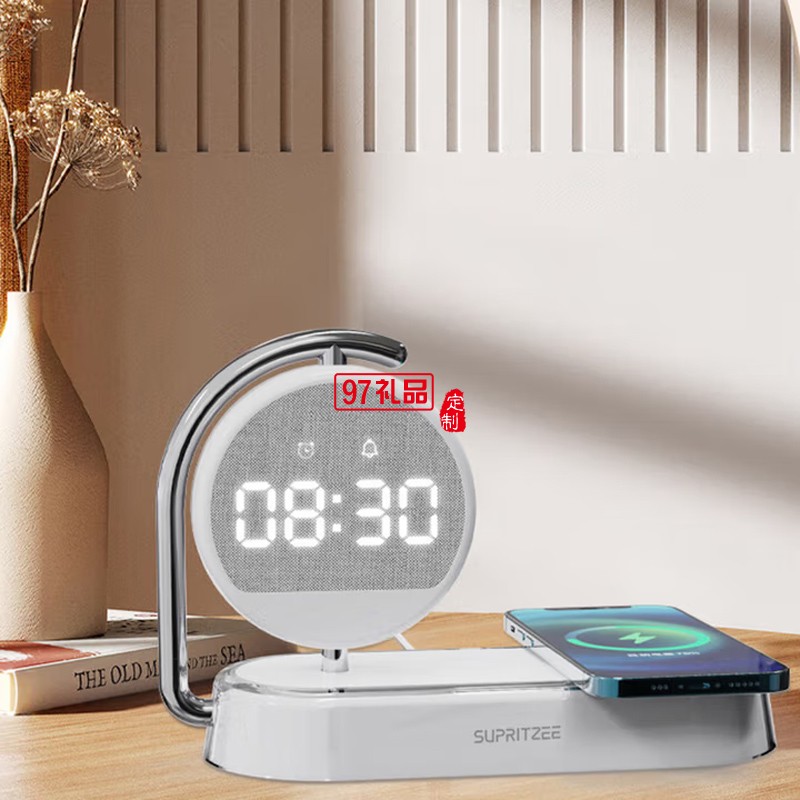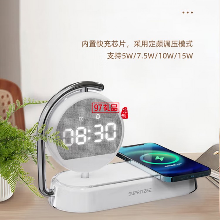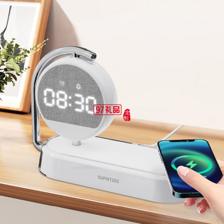 蘇浦瑞茲時鐘顯示+三組鬧鐘設置15W無線快充小夜燈