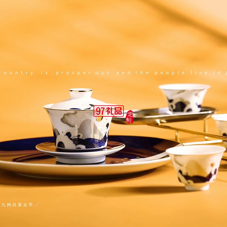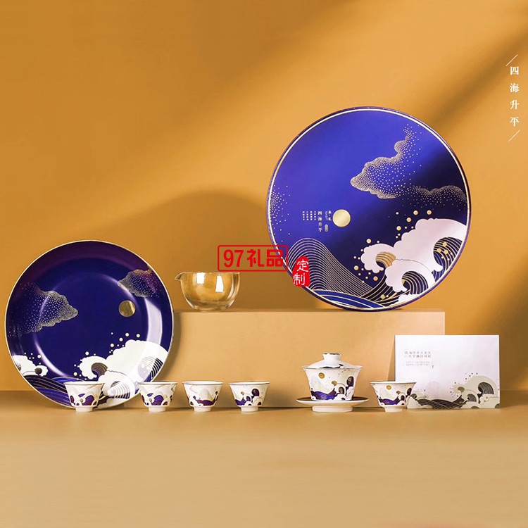 國潮茶具套裝8頭描金四海升平茶具禮盒