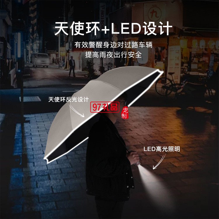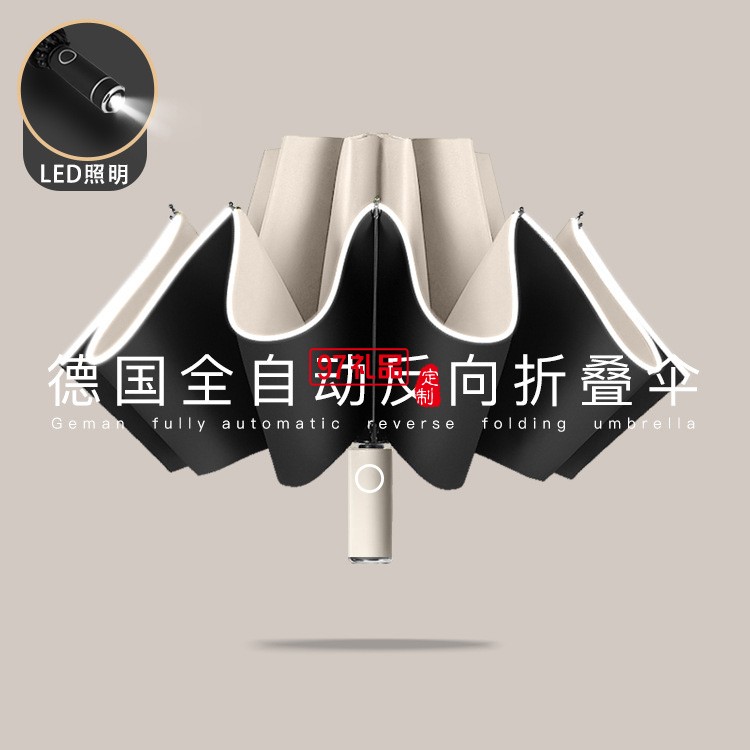 全自動(dòng)反向晴雨兩用LED手電筒太陽(yáng)傘廣告防曬印logo遮陽(yáng)ins雨傘