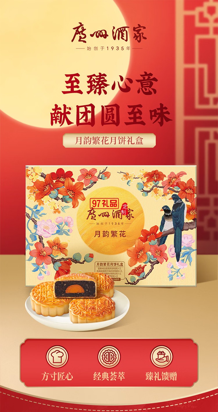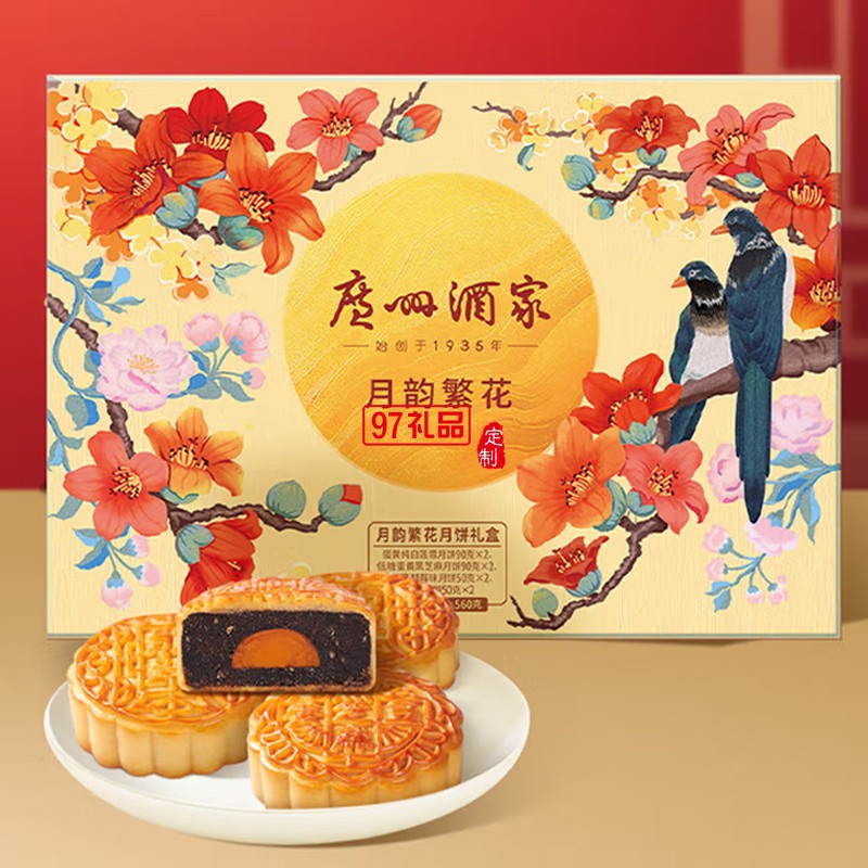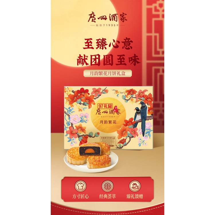 廣州酒家中華老字號月餅禮盒廣東中秋節(jié)日送禮禮品 月韻繁花月餅禮盒