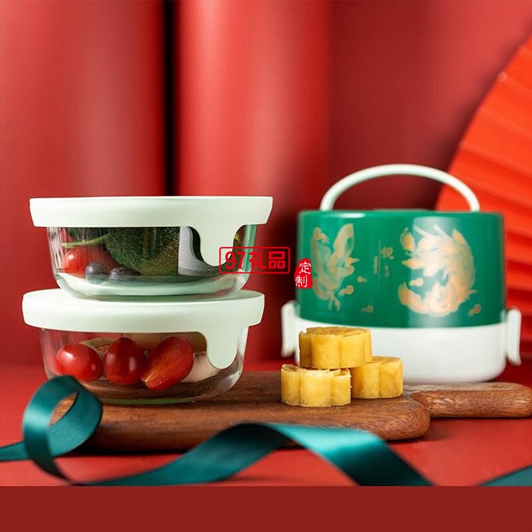 國(guó)風(fēng)便當(dāng)盒 復(fù)古便當(dāng)盒 耐熱玻璃便當(dāng)盒菁萃便當(dāng)盒一體套裝